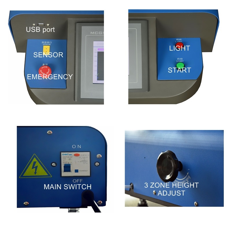 2. Equipped with touch panel interface and PLC controlling to ensure it work stably and reliably. And it can storage multiple temperature profiling data of users. With password protection and modification function while power on. The temperature profiles will be displayed on the touch screen.
