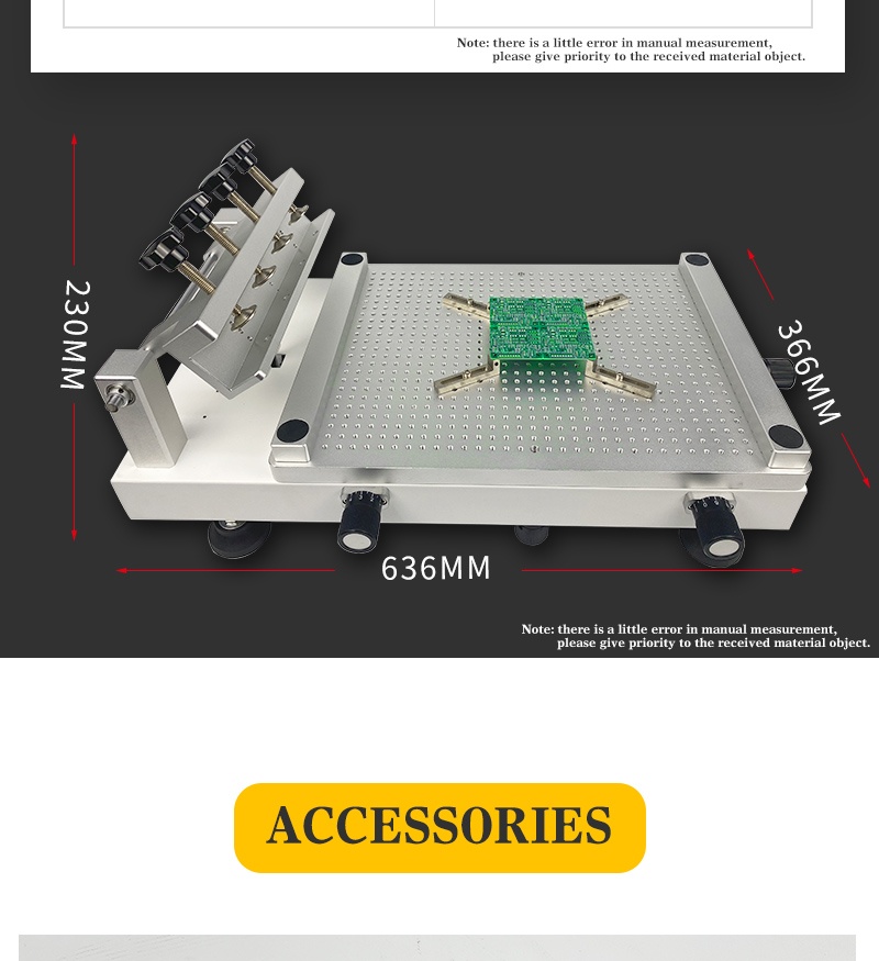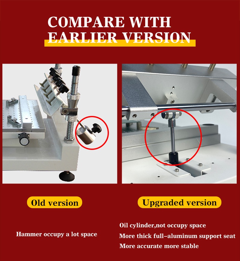 The steel wire frame adopts spiral screw bar, which can adjust the height up and down to control the thickness of PCB and the amount of printing paste