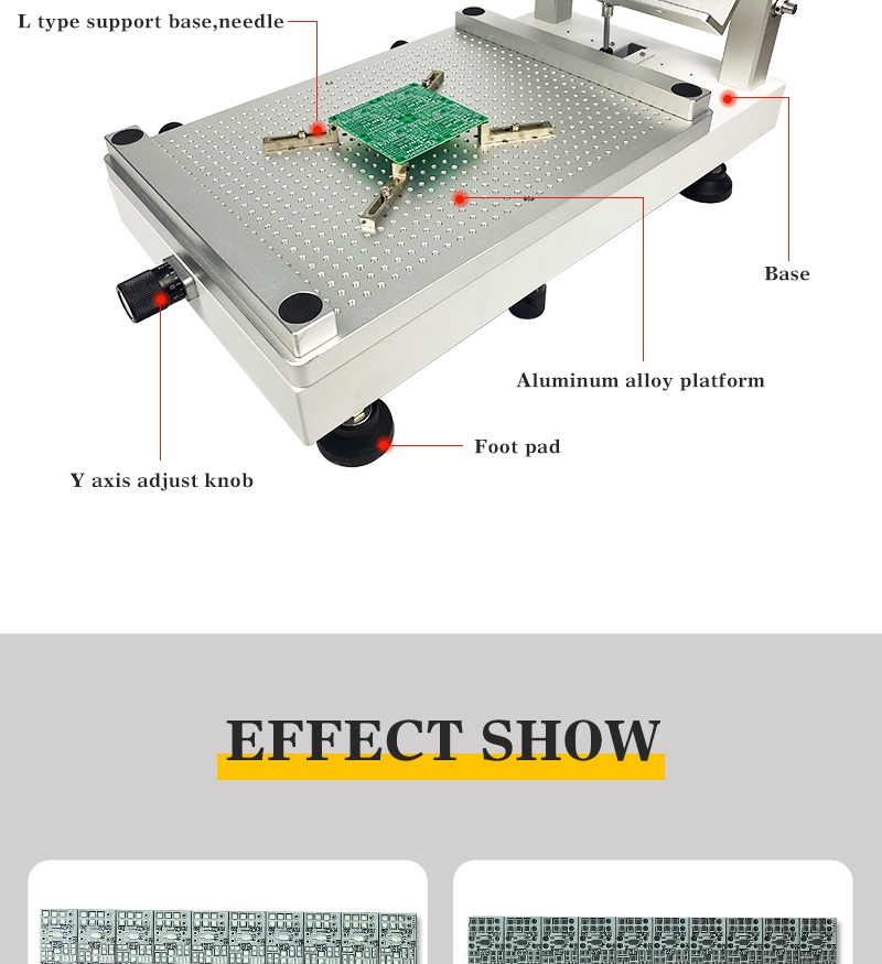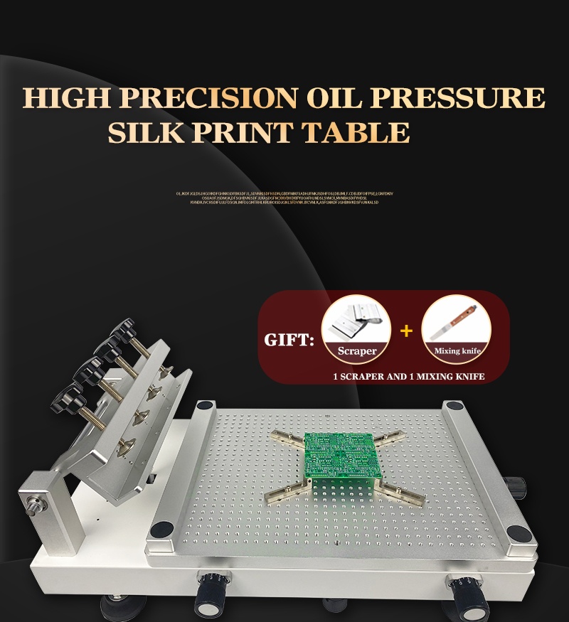 precise silkscreen is mainly for single double-sided circuit board paste or red glue printing design requirements, the working platform selects high quality aluminum board with honeycomb positioning hole, the baseboard is adopted thicken steel board welding molding, strong solid, durable.