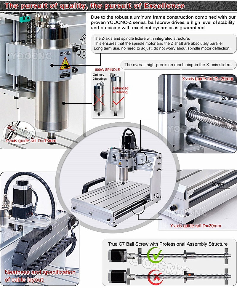 Spindle motor: 800W VFD water cooling spindle , 0-24000r/min