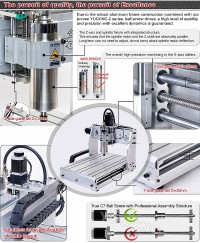 The cnc router is designed for large area engraving work such as Industrial or Hobby Prototype Building, Building Model Making, PCB, Advertising Signs, Artwork, Crafts, Aircraft Models, RC Model parts, etc. So, you can do engraving work at office or home.