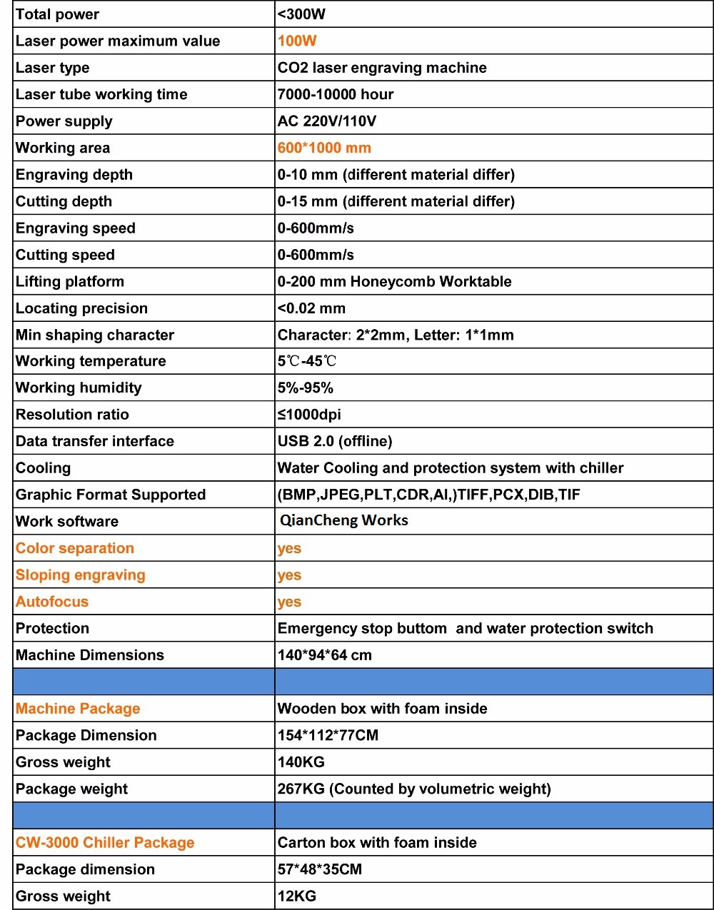 1.Laser 100W Engraving machine 1000X600MM