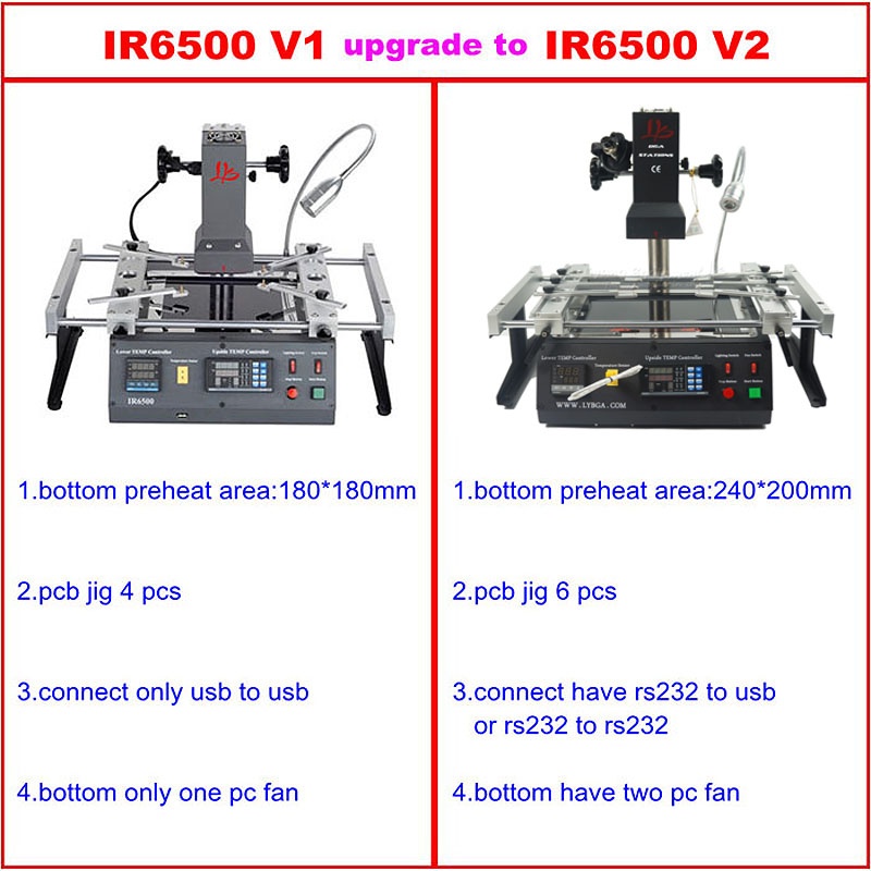 IR6500 V.2 Rework station for laptop motherboards, desktop computer motherboards, server boards, industrial computer boards, all kinds of game boards, communications equipment motherboards, LCD TVs and other large circuit board BGA rework.