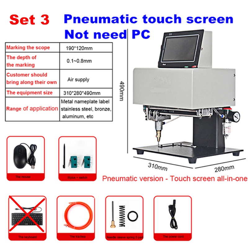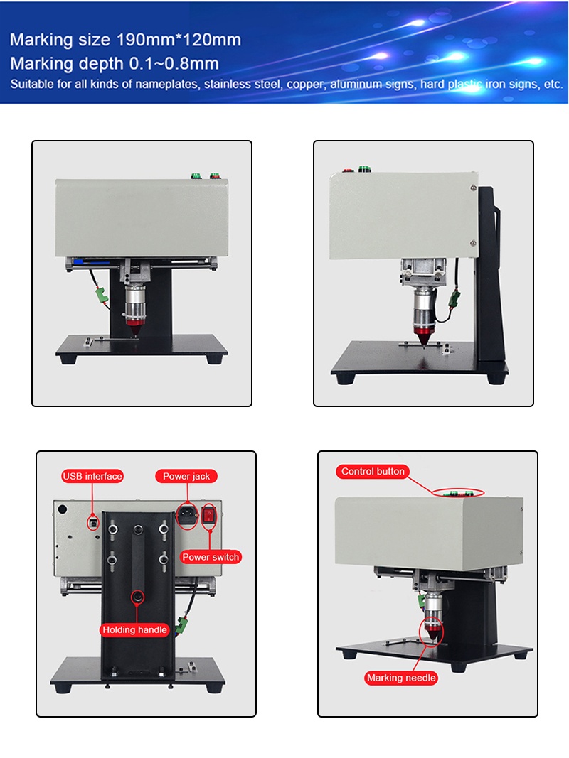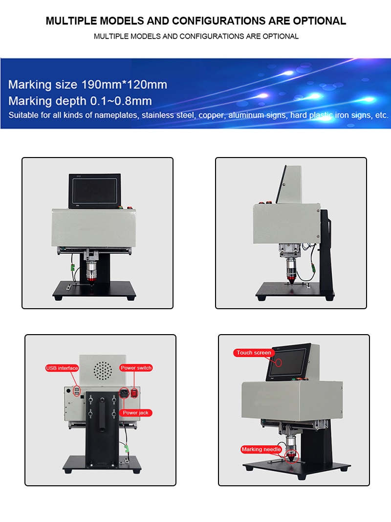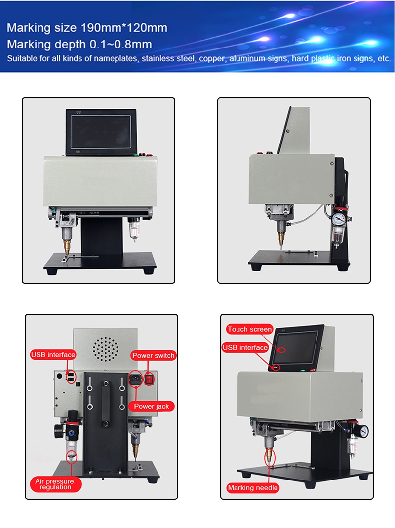 Desktop Portable metal signage nameplate marking machine 3axis touch-screen Electric Pneumatic Lettering Machine 190x120mm for metal parts nameplate