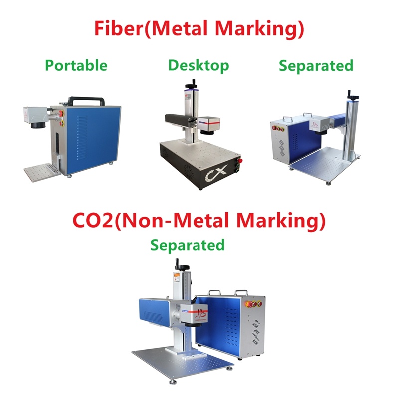 Fiber laser marking is used for metal stuff fast marking mainly,CO2 Metal marking machine is used for non-metal stuff fast marking mainly.