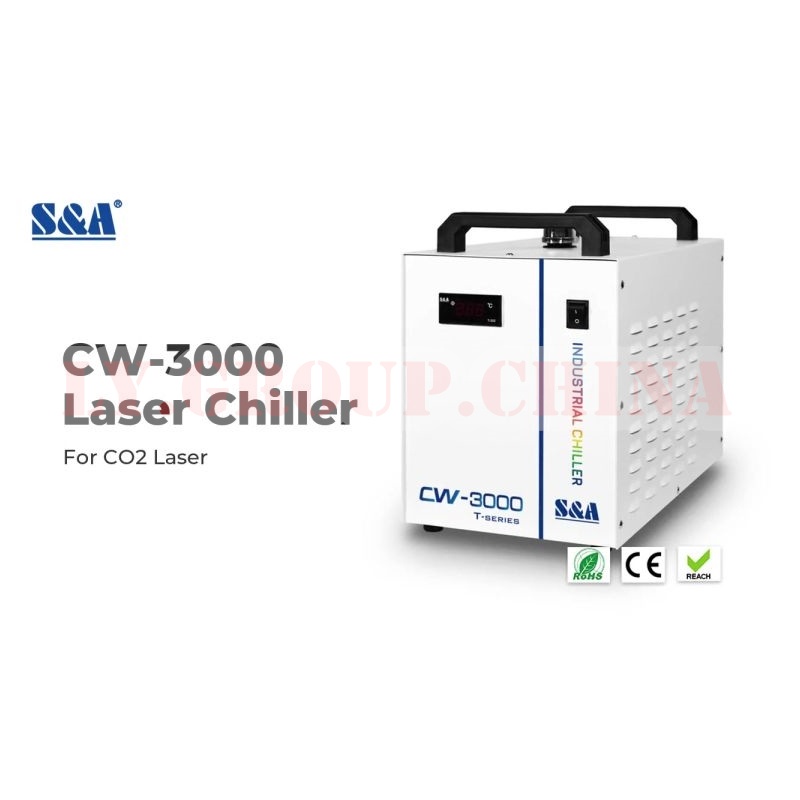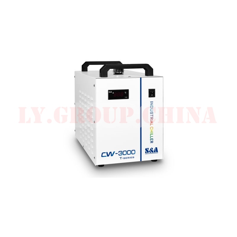 S&A CW 3000 chiller is a Basic passive cooling solution suitable for ≤80W CO2 laser engraving machine powered by DC glass tube. Featuring the heat dissipation capacity of 50W/°C and a 9L reservoir, this small recirculating chiller can radiate the heat from the laser tube very effectively. CW3000 water chiller is designed with high speed fan inside without compressor to reach heat exchange in a simple structure with high reliability.