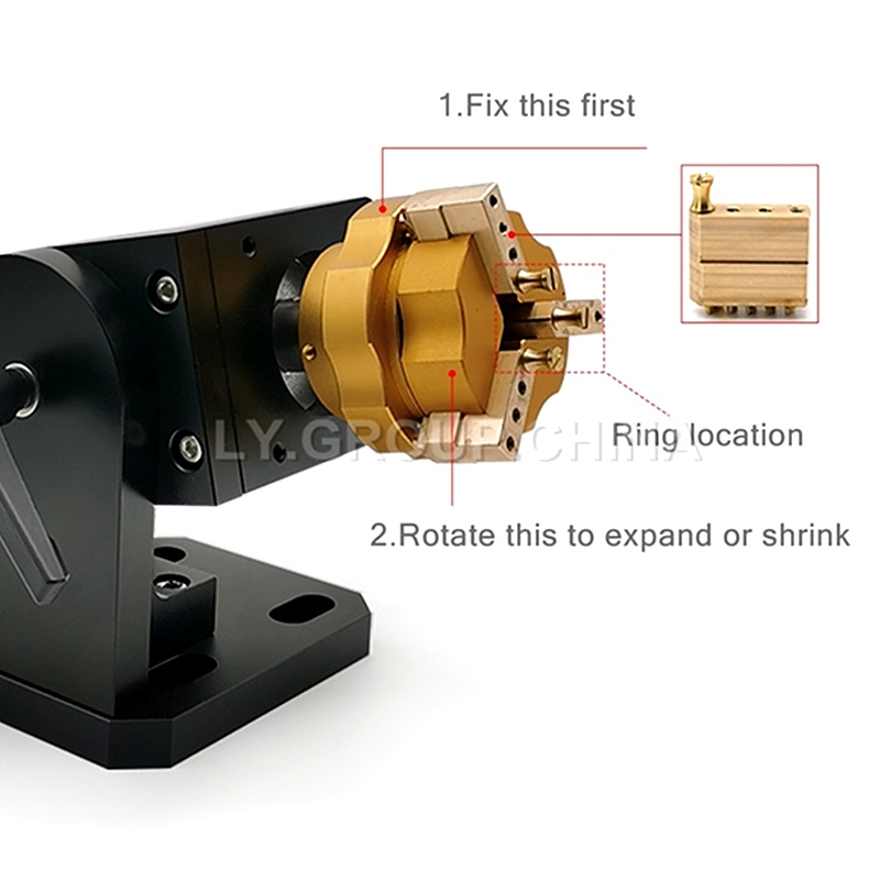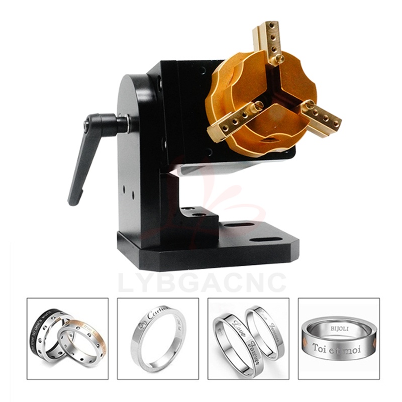 LYBGACNC Professional Ring Jewelry Rotary Axis With Copper Clamp Jig Round Wheel Rotary Axis Chuck 80mm A Axis Rolling Roller Axis For Fiber Laser CO2 UV Carving Marking Engraving Machine Use Ring Processing Marking of Cylinders Pen Marking