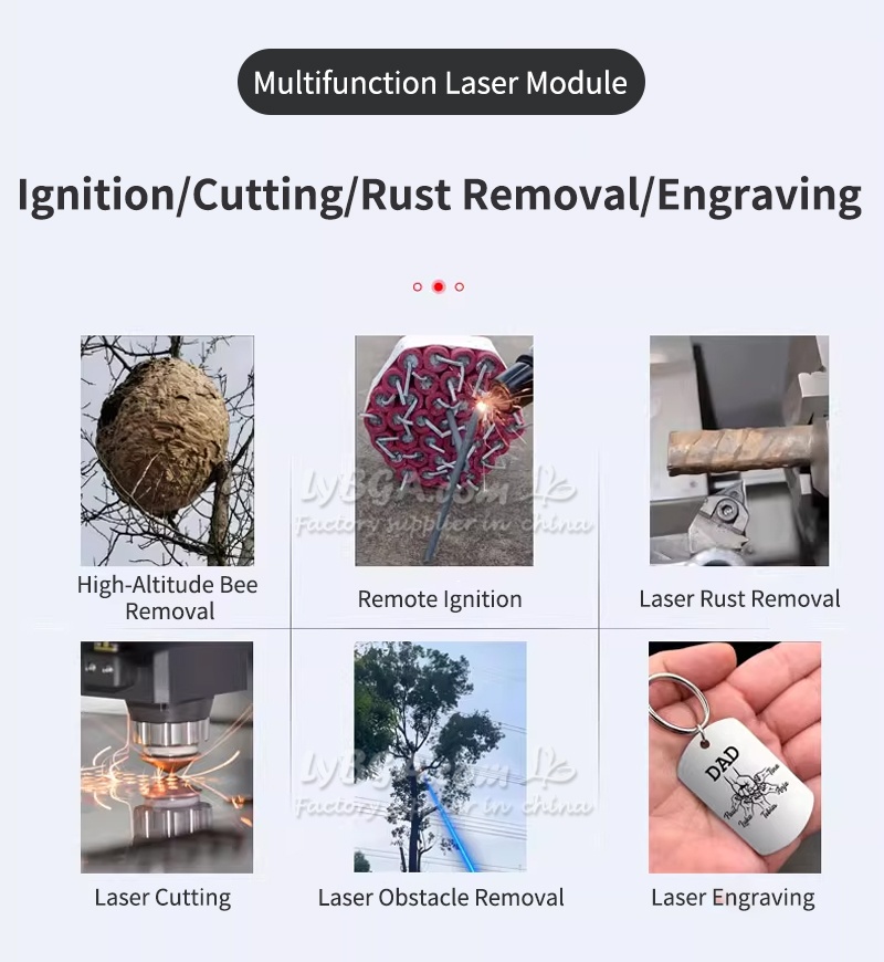 4-in-1 Multi-Function Laser Module Customized Ignition/Cutting/Rust Removal/Engraving Capabilities For metal, wood, leather marking Weed removal, plant trimming, high-altitude obstacle clearance