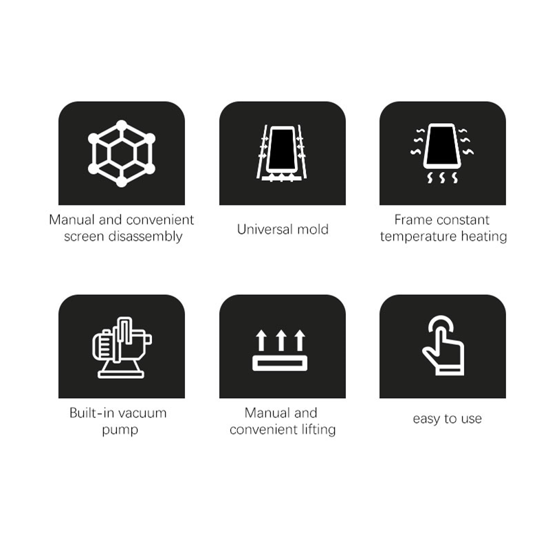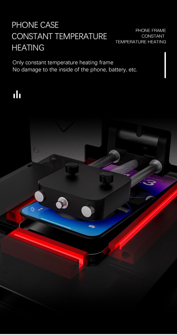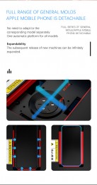 • Universal Mold Compatibility: Universal mold design for iPhone 5S-13 Pro Max, simplifying screen disassembly across generations.’, Intelligent LCD Screen Control:Intelligent LCD screen control for precise heating and separation, safeguarding your iPhone’s components., ‘Strong Vacuum Pump Suction:Built-in vacuum pump with strong suction for securely holding your iPhone during the screen removal process.