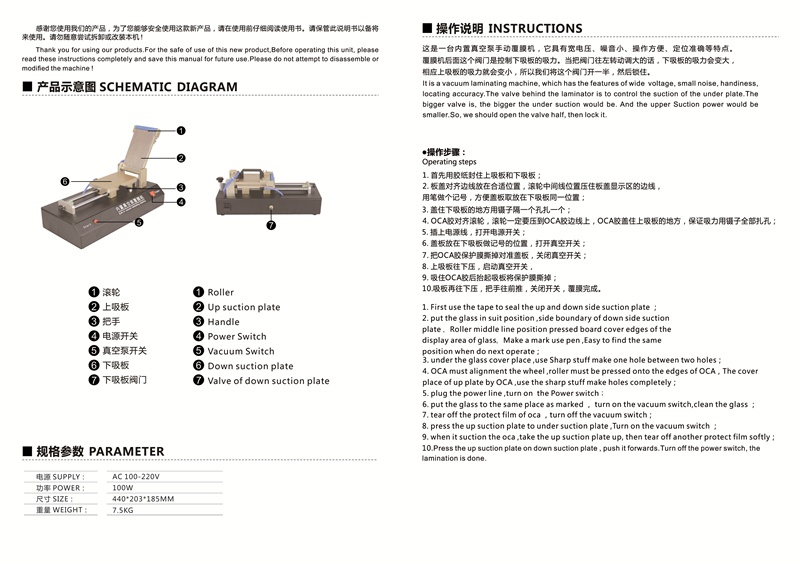 LY 971 manual vacuum film laminating machine 220V 110V Instruction for use
