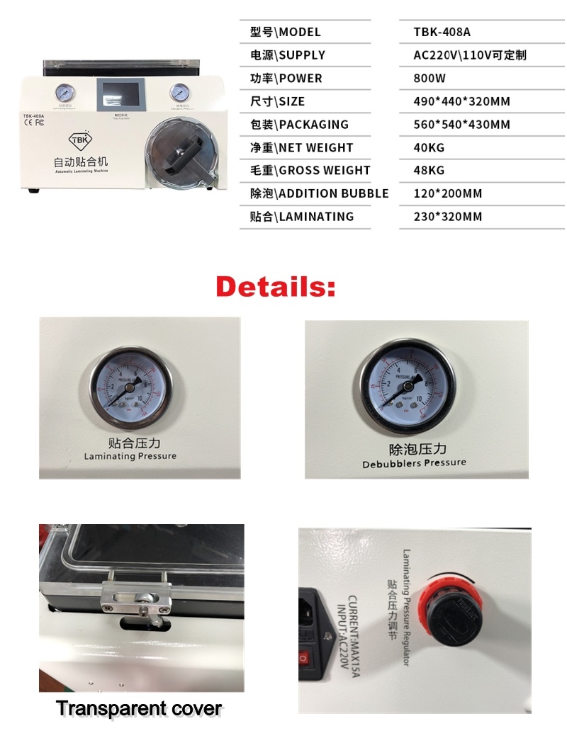 LY-TBK 408A 15 Inch Vacuum Pump LCD OCA Laminator built-in 8 inches debubble machine all In One For Smart Phone Touch Screen Refurbish 220V 110V
