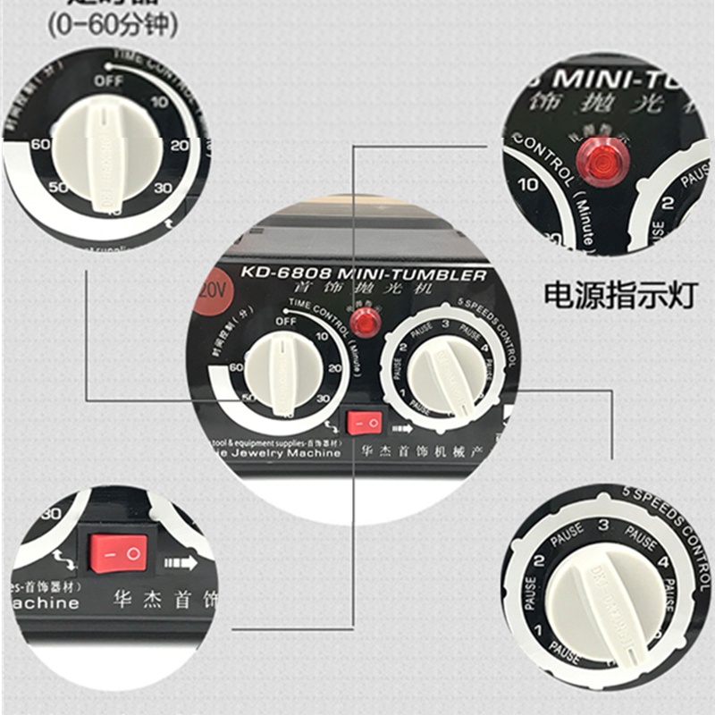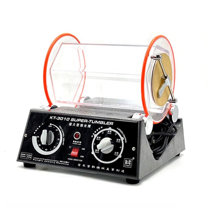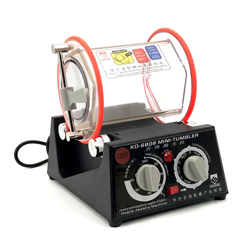 The jewelry polisher tumbler can be used for surface polishing, chamfering, dressing, rust removal, roughing, precision polishing, black spot removal, and fine grinding. Excellent for studio and small jewelry projects.