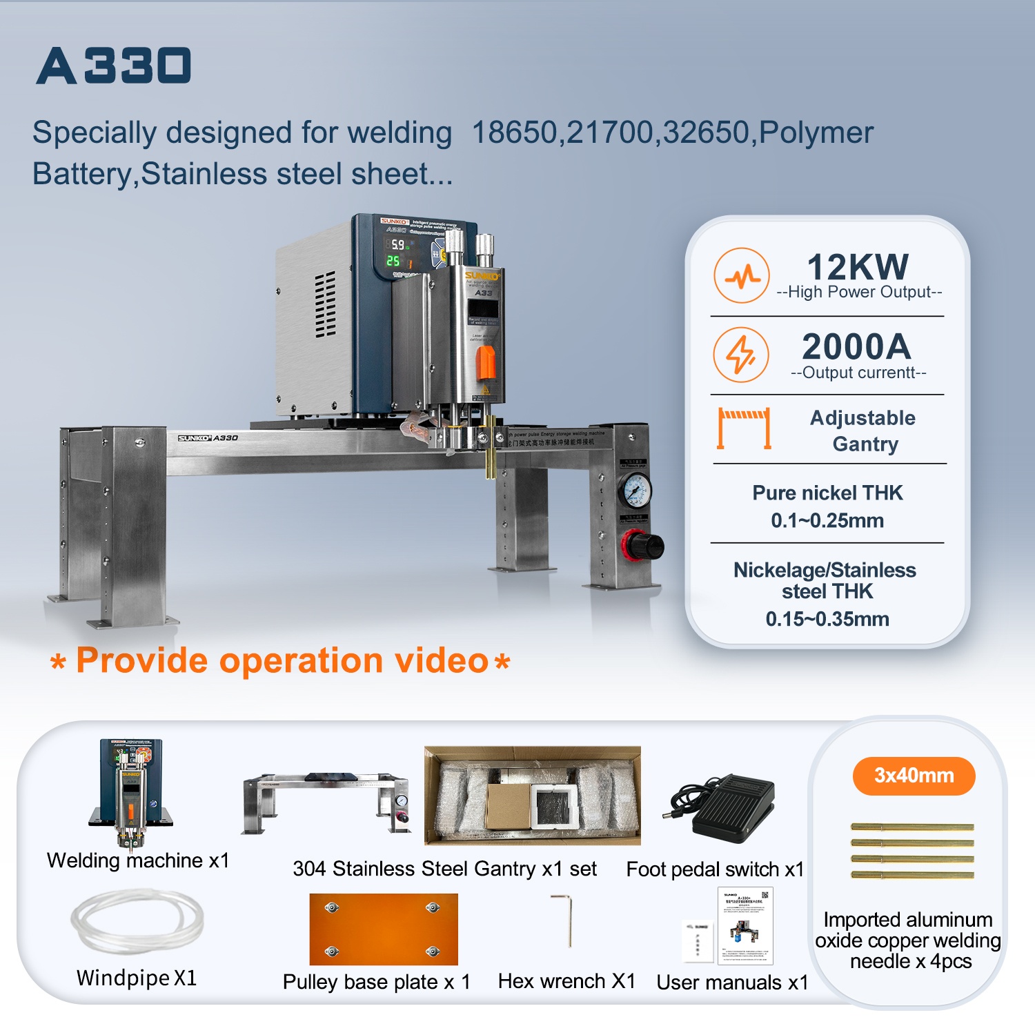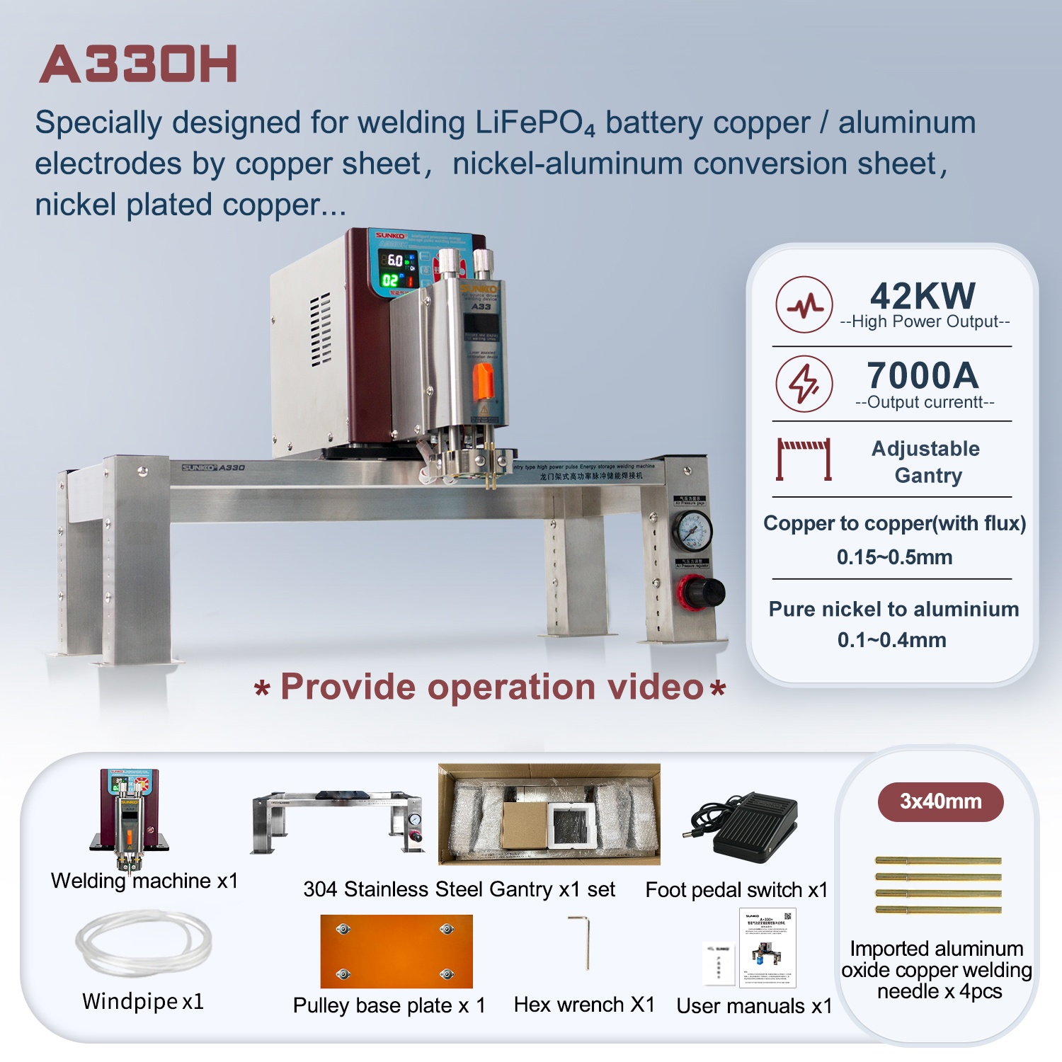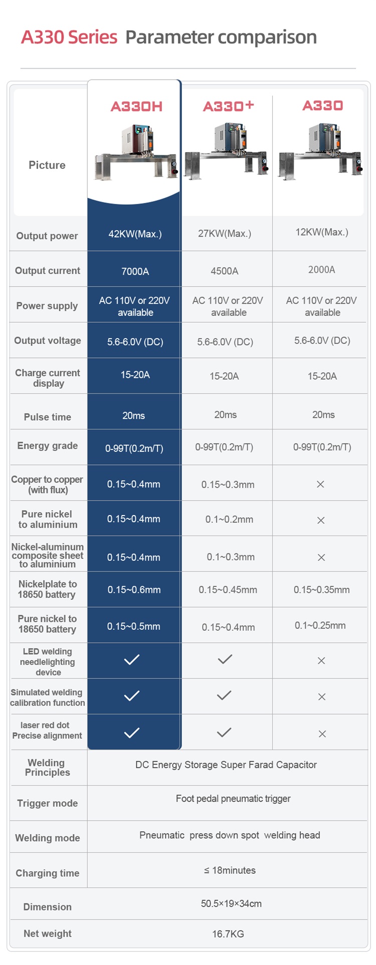 A330/A330+/A330H Gantry Pneumatic Lithium Battery Pulse Energy Storage Spot Welder 12KW/27KW/42KW Industrial Grade Pneumatic Spot Welding Machine 2000A/4500A/7000A