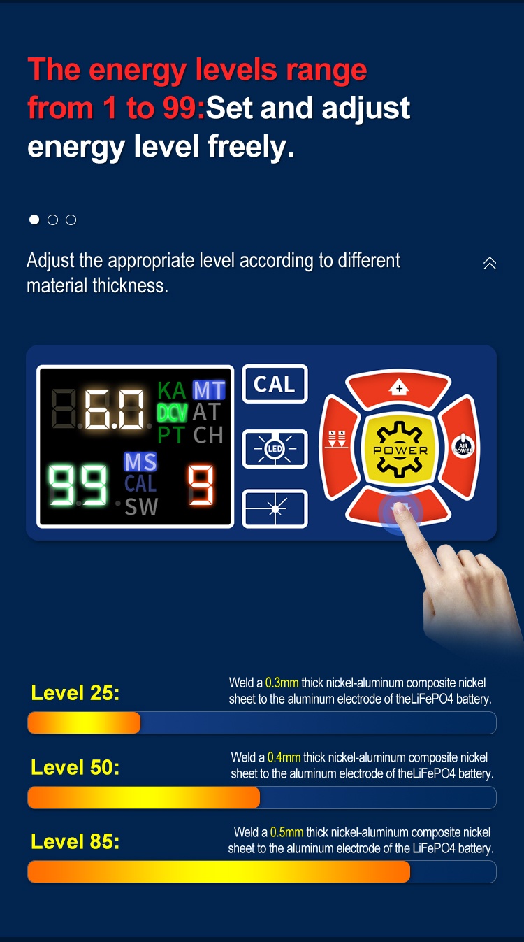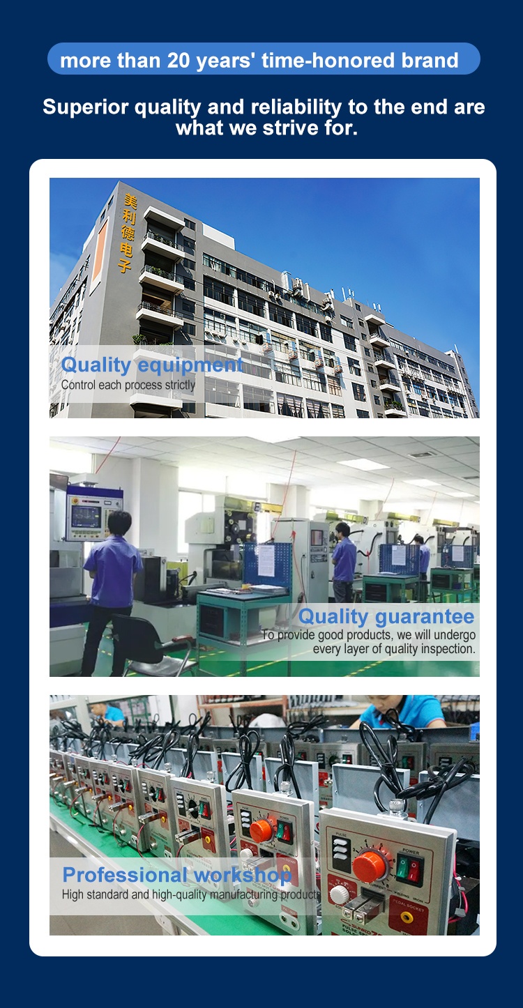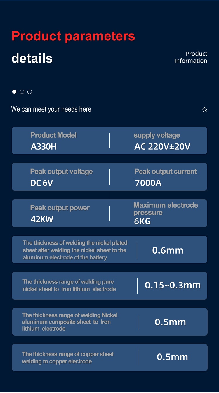 1. Packaging size of spot welding machine: length 440 * width 220 * height 330mm Weight: 13.3kg