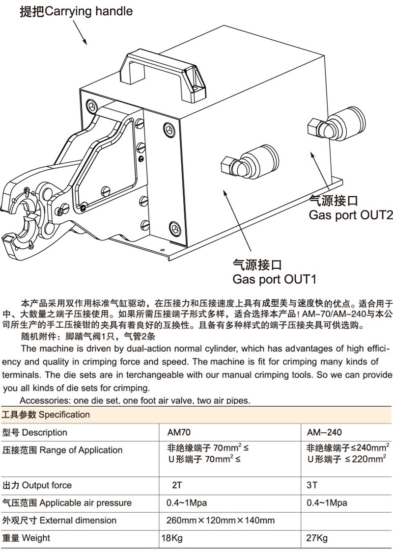 AM-240 Heavy Duty Pneumatic Crimping Tool Crimp 6-240mm2 Cable Terminals and Lugs
