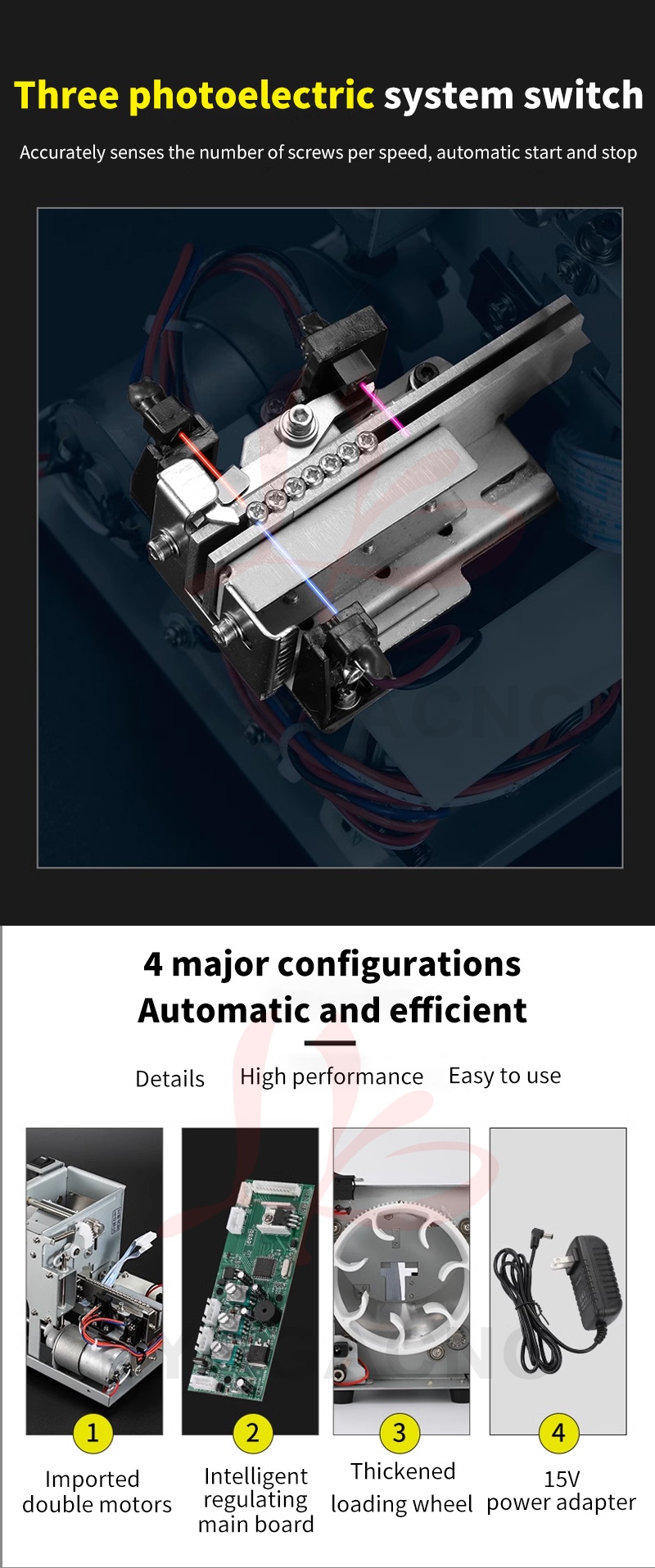 Automatic Screw Feeding Machine Feeder Adjustable Guide Rail Electric Screwdriver Digital Display Automatic Arrangement Screw Capacity 500CC Screws with Spacer Countersunk Head Screws Cup Head Screws