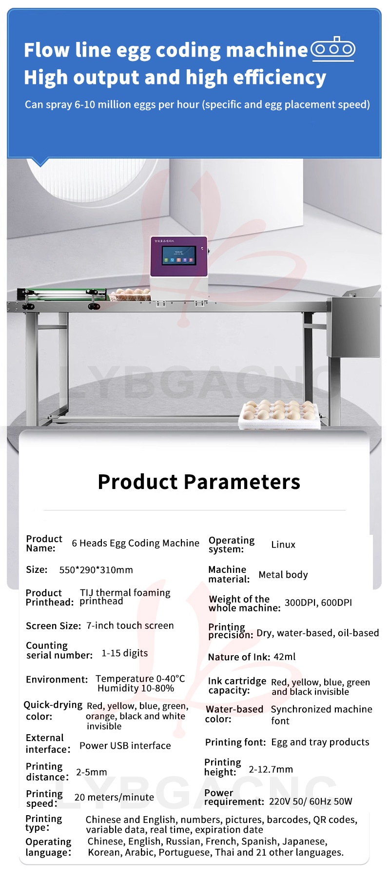 Automatic XY-Axis Egg Coding Machine Six Nozzles Assembly Line Egg Coding Machine Adjustable Height Various Colors Available