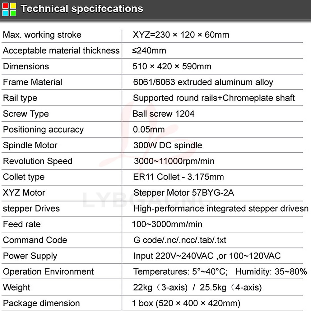 Stepper motor: NEMA23-2.5A Weight: 3.5KG |