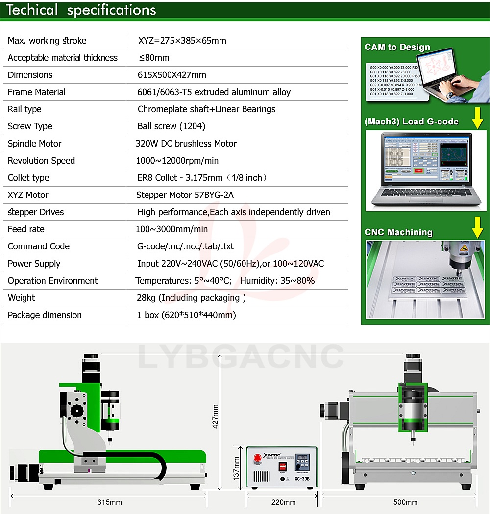 CNC Router Engraver Xlntcnc Xc-30b Engraving Drilling And Milling Machine Usb Lybgacnc Xc-30b Suitble For Industry And Teaching