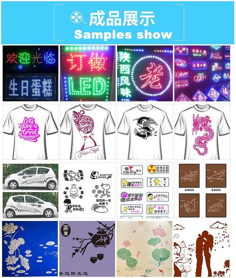 Advertising word of sign, electronics, building mold, clothing drawing, figure hot cutting, etc.