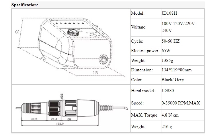 JD-108H JSDA 35000 RPM 65W Economic Nail Drill Pedicure Manicure Milling Machine Device Manual Electric Tool For Jewelry Jade Stone Wood Carving Engraving Mill