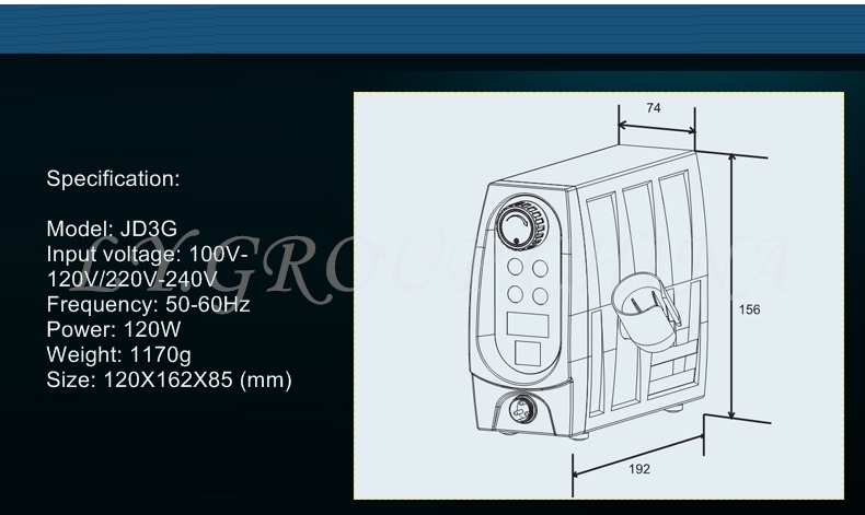 JD-3G 50000 RPM 120W Big Power Nail Drill Pedicure Manicure Milling Machine Device Manual Electric Tool Super Strong Brushless Motor For Jewelry Jade Stone Wood Carving Engraving Mill
