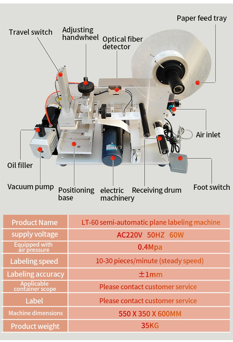 LT-60 Semi Automatic Pneumatic Flat Labeling Machine Drugs Bottle Labeling device Medicine Bottle Labeling equipment