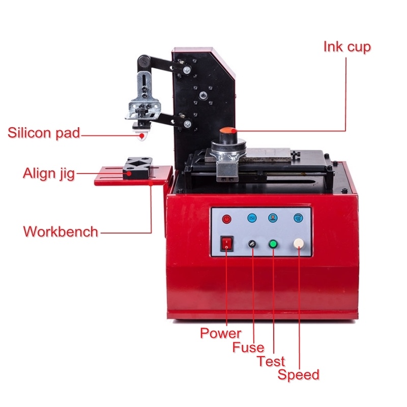 LY-380 220V super power 100W Environmental semi-automatic Desktop Electric Pad Printer Round Pad Printing Machine Ink Printer for Product Date Small Logo Print + Cliche Plate +