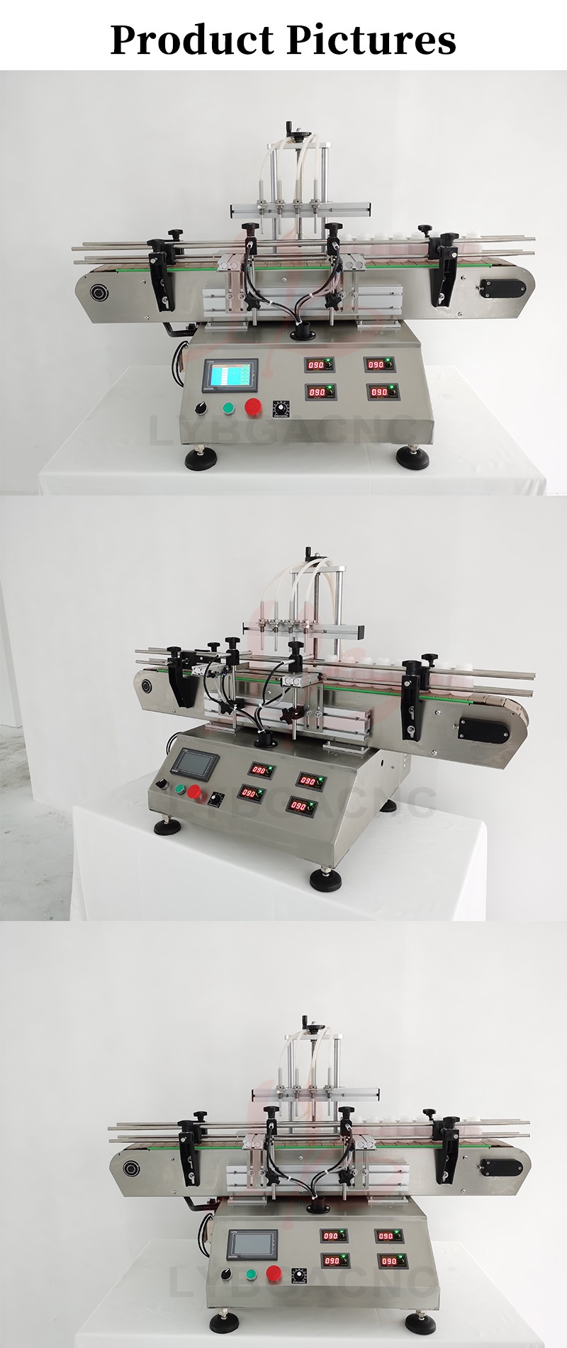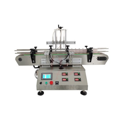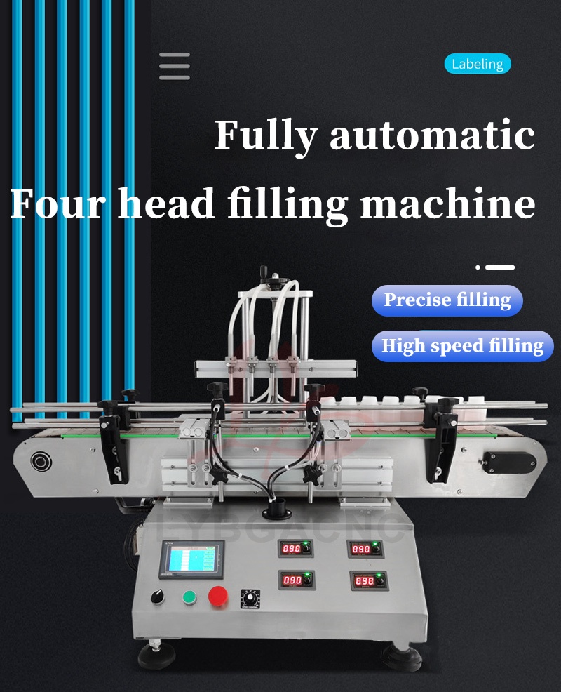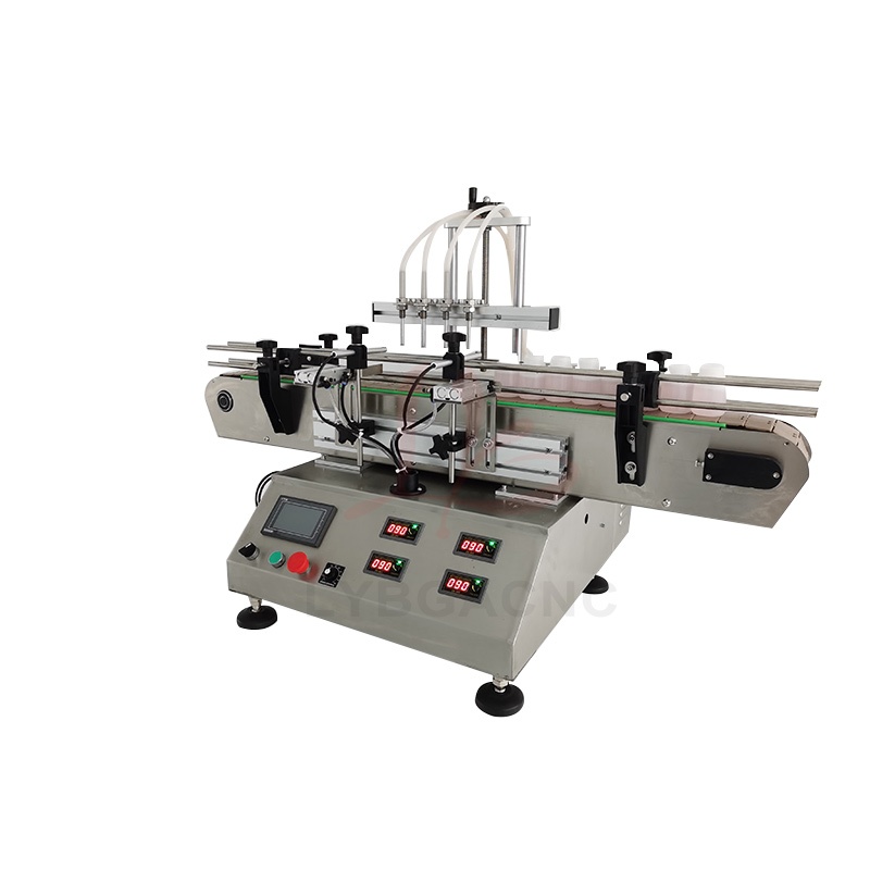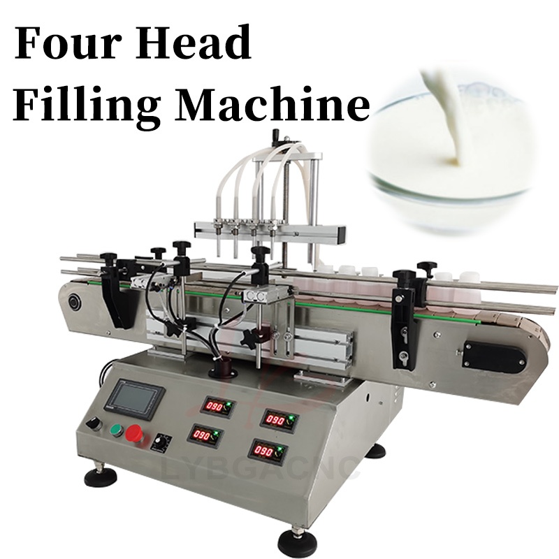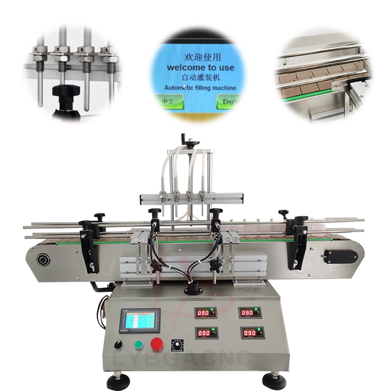 LY Automatic Touch Screen Control Four Heads Nozzles Liquid Filling Machine Magnetic Pump With Small Conveyor Line For Fruit Juice Drink Milk Dispensing Fill 0.4KW 220V/110V 50/60Hz
