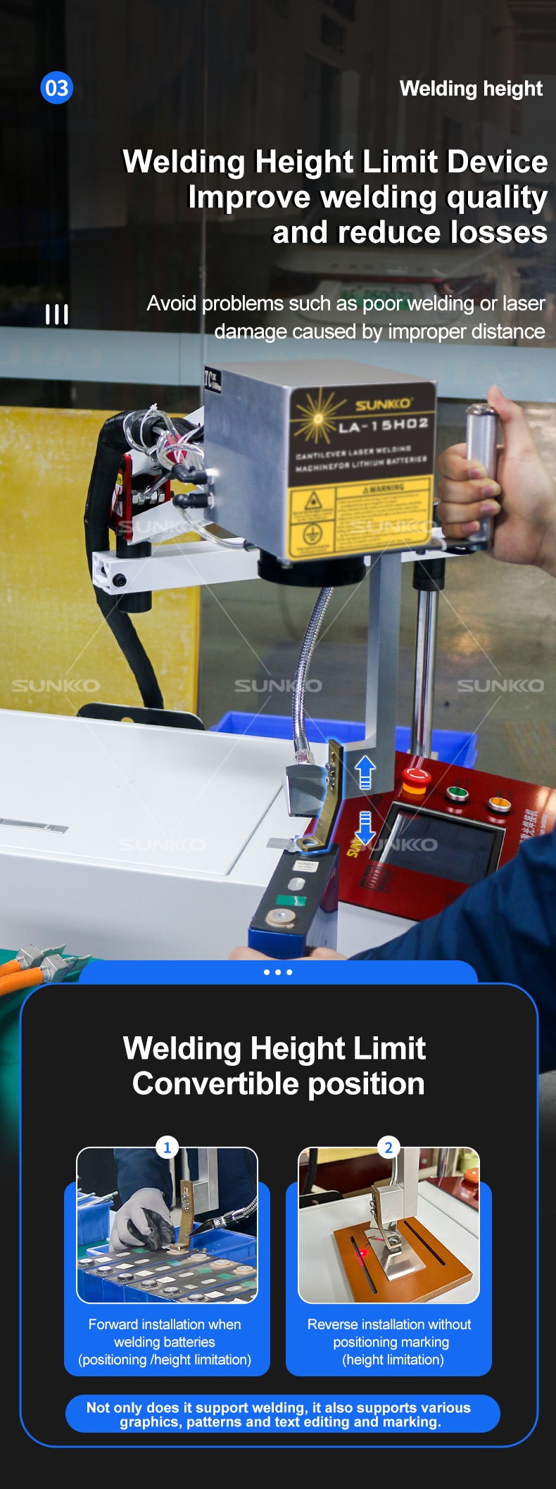 LY Sunkko LA-15H02 Multi-Functions Handheld Downward Pressure Cantilever Type Laser Welding Marking Machine MAX 3000W For New Energy Lithium Batteries Stainless Steel