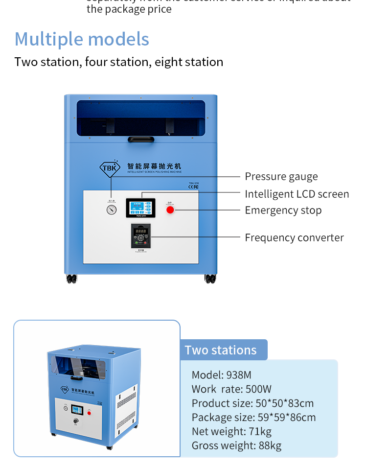 1.Options: 3 models as below: 2 stations TBK 938M / 4 stations TBK 938 / 8 Stations TBK 938L