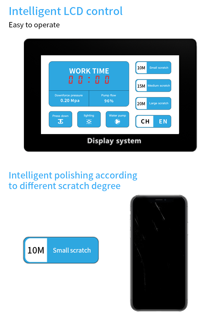 The grinding & polishing machine is used to refurbish the phone screen, back glass and apple watch screen.