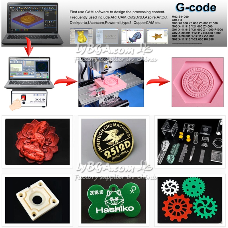 First use CAM software to design the processing content. Frequently used include ARTCAM, Cut 2D/3D,Aspire,ArtCut, Deskporto, Ucancam, Powermill,type3, CopperCAM etc…