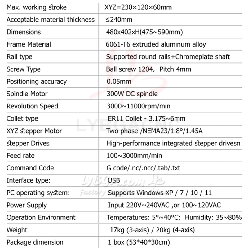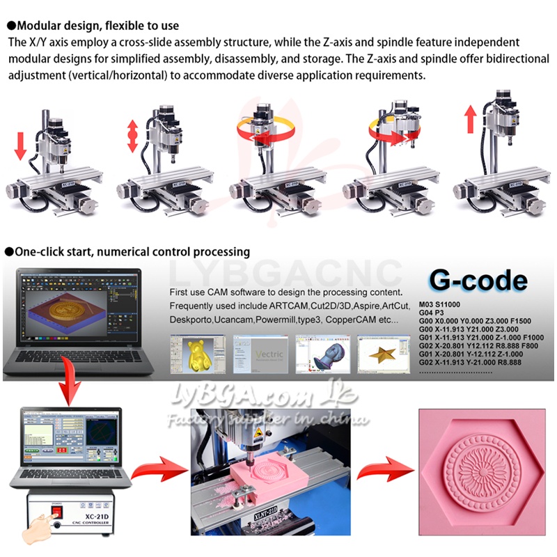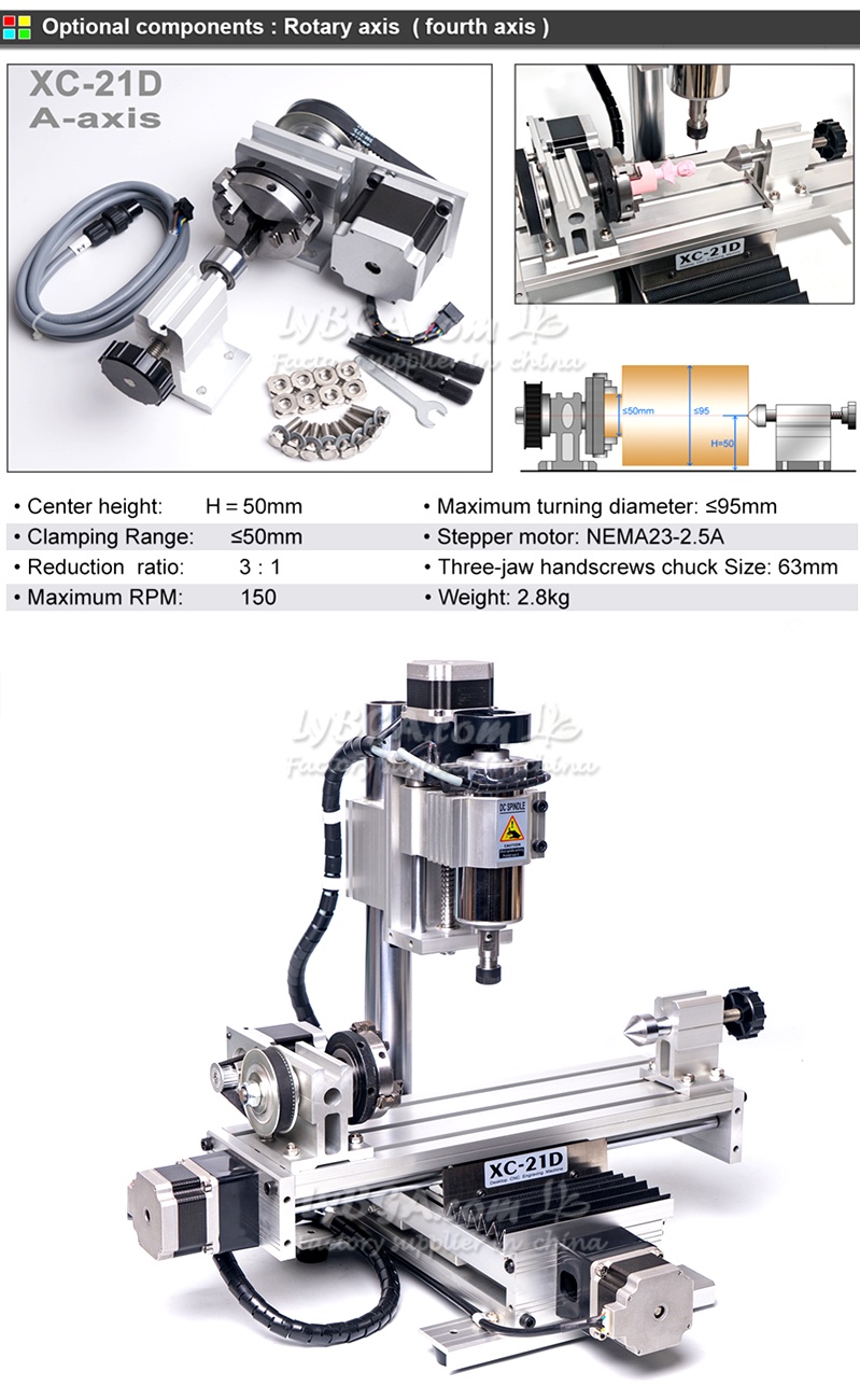 CNC Engraving And Cutting Machine LY XC-21D Customized Diy Cutting Optional 3/4 Axis 300w Dc Spindle Er11 Collet