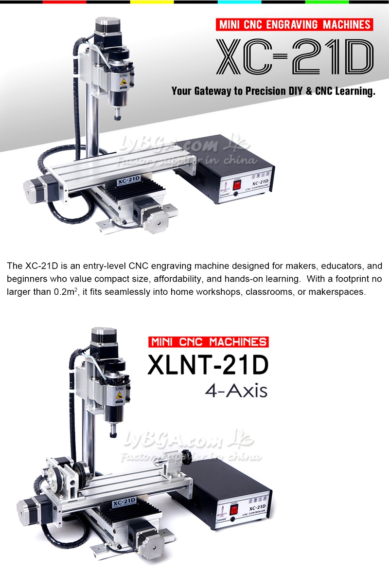 The XC-21D is an entry-level CNC engraving machine designed for makers, educators, and beginners who value compact size, affordability, and hands-on learning. With a footprint no larger than 0.2m², it fits seamlessly into home workshops, classrooms, or makerspaces.