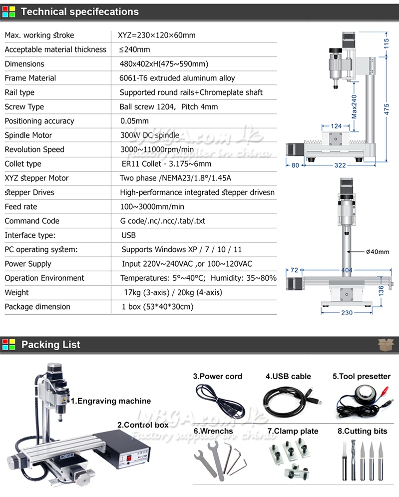 XYZ=230*120*60mm