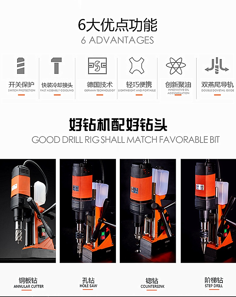 Magnetic Drill Press Electric Bench Drilling Rig Machine for Engineering Steel Structure
