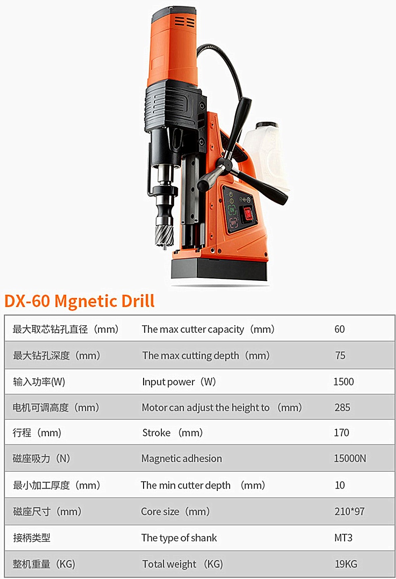 Magnetic Core Drill Machine DX-35 DX-60 Annular Cutter Magnetic Drill Press 1100W 1500W Electric Bench Drilling Rig Machine for Engineering Steel Structure