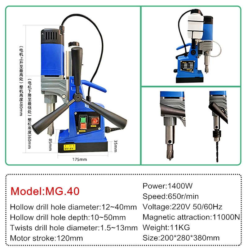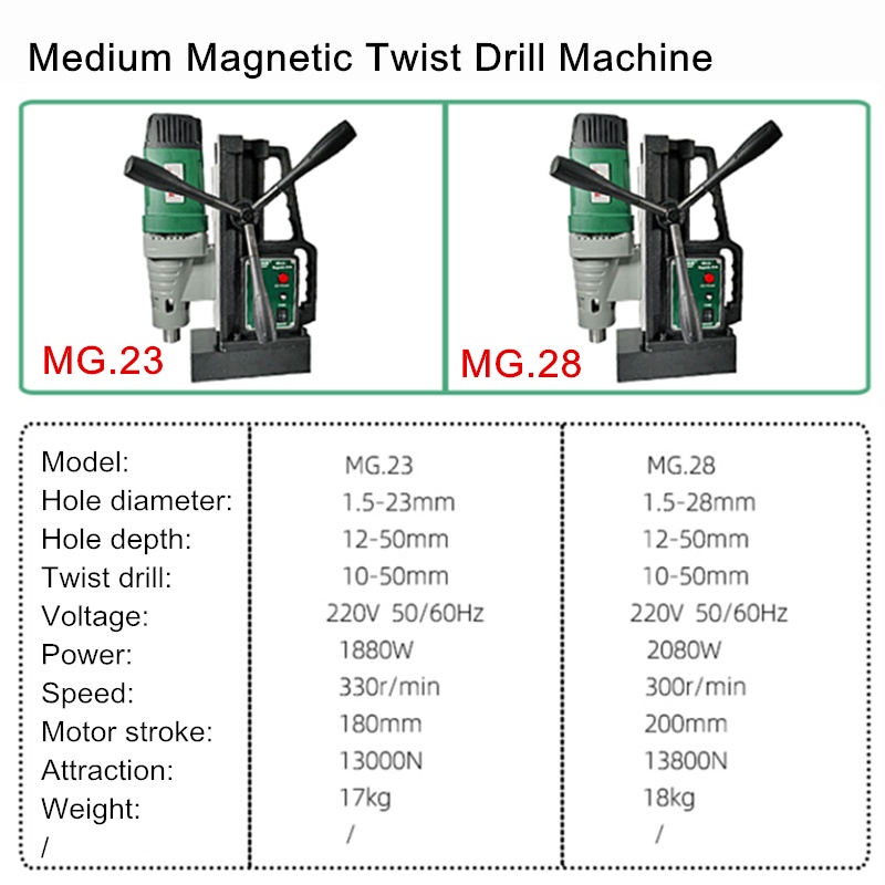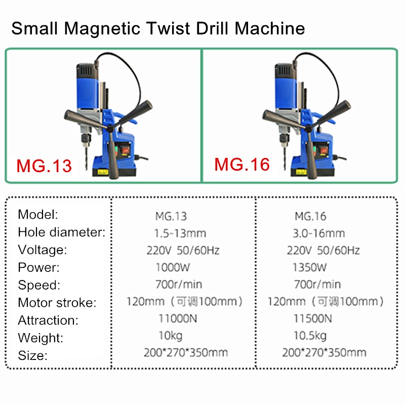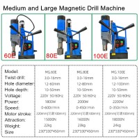 Magnetic Core Drill Machine MG13 MG16 MG23RE Annular Cutter Magnetic Drill Press 1500W 2000W Electric Bench Drilling Rig Machine for Engineering Steel Structure
