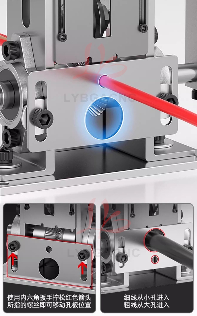 1. Stripping diameter range: This portable wire stripping machine can handle various types of cables, from 1mm to 21mm in diameter. It has three feed holes of different sizes (Φ7mm, Φ13mm and Φ21mm) to accommodate different cable thicknesses.