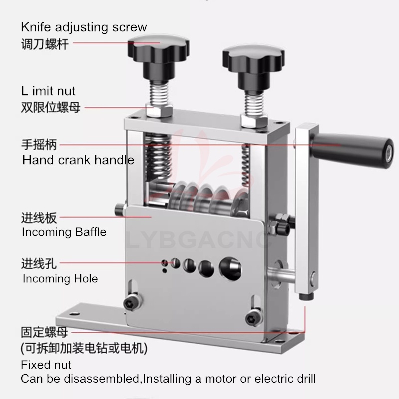 2. Labor-saving: This portable wire stripping machine can be operated manually with the detachable hand crank or electrically with a drill, giving you more flexibility and efficiency.