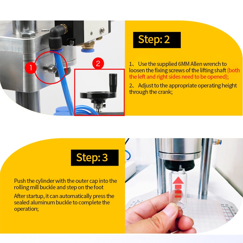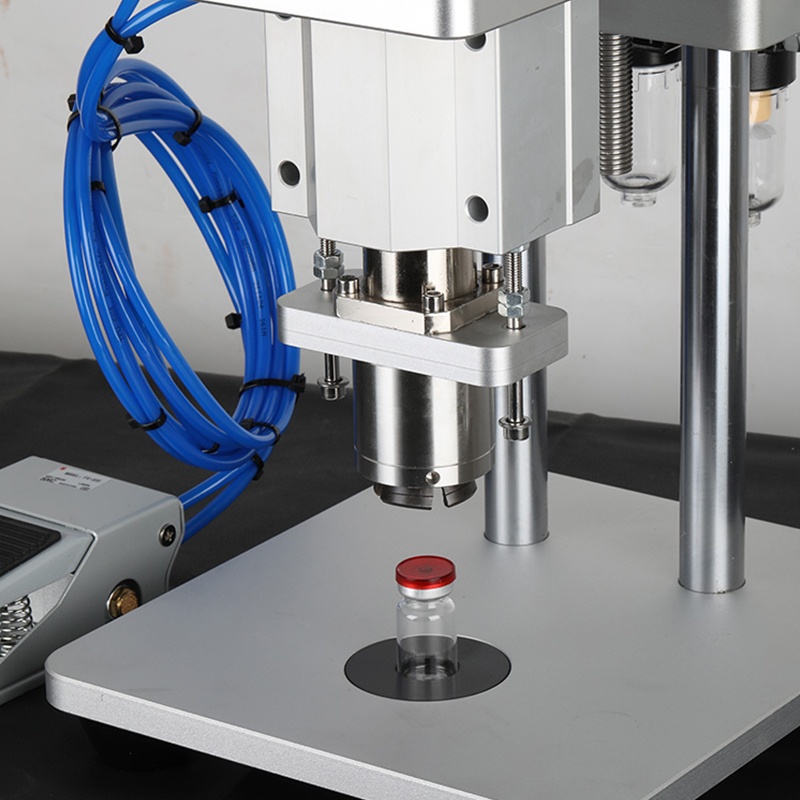 Oral Liquid Bottle Vials Capping Machine Tabletop Manual Pneumatic for Collar Ring Crimping Vial Top Pressing Pneumatic Glass Bottle Fragrance Scent