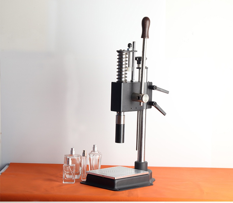 Perfume Bottle Capping Machine Tabletop Manual Pneumatic for Collar Ring Crimping Vial Top Pressing Pneumatic Glass Bottle Fragrance Scent