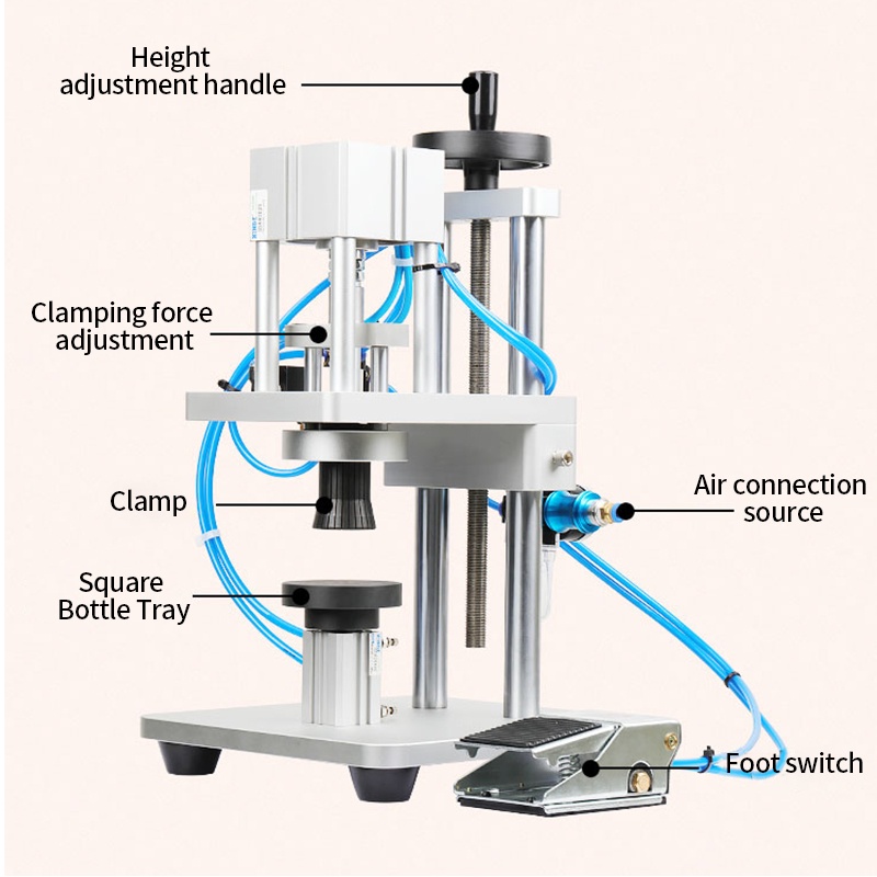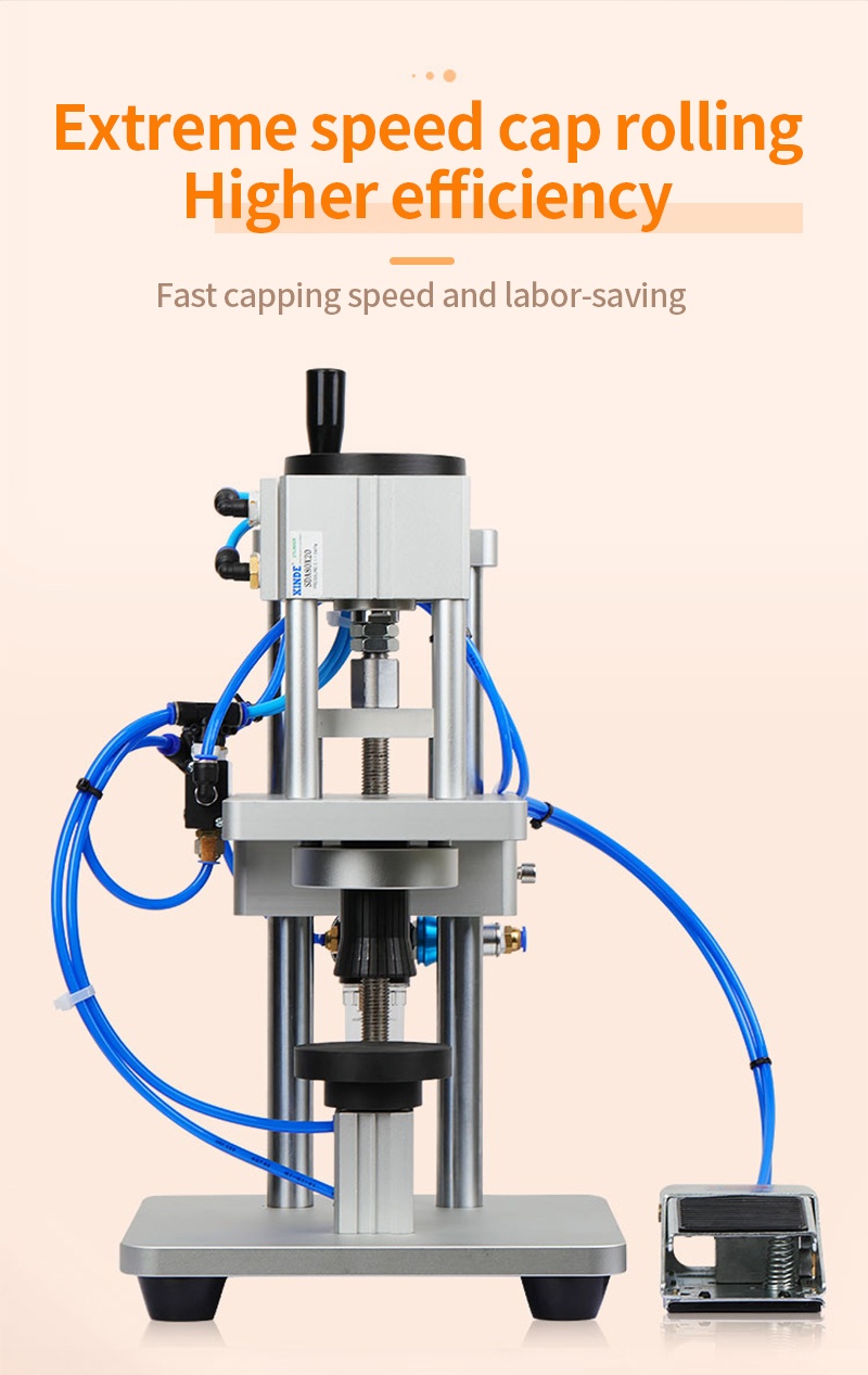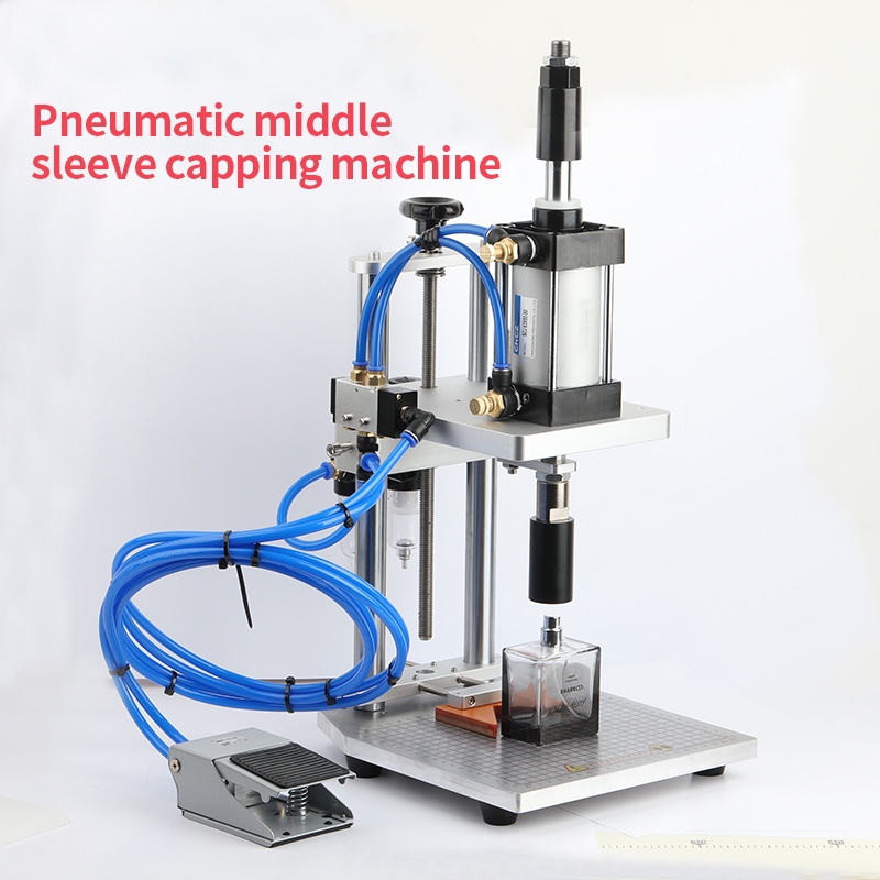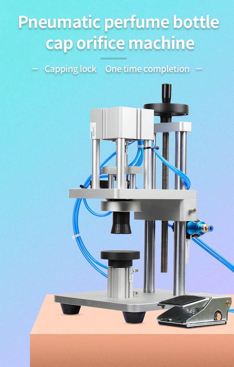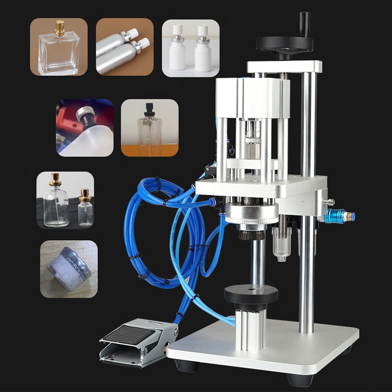 Perfume Bottle Capping Machine Tabletop Manual Pneumatic for Collar Ring Crimping Vial Top Pressing Pneumatic Glass Bottle Fragrance Scent