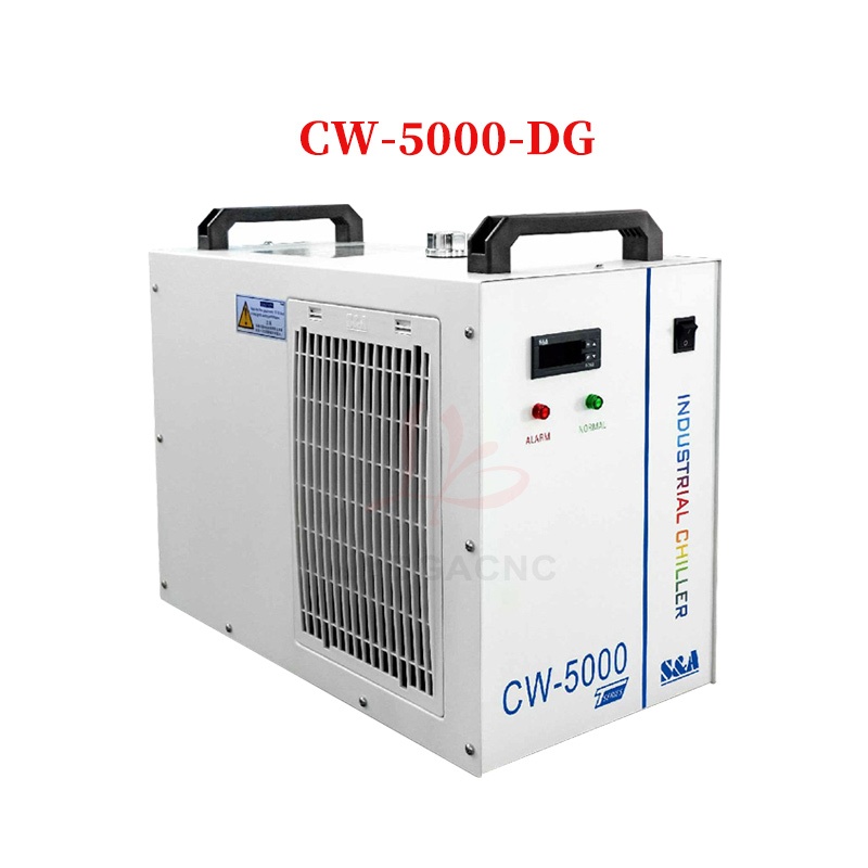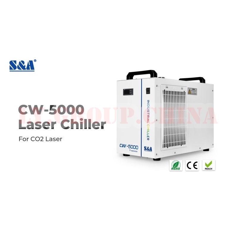 With S&A industrial chiller cw 5000, your CO2 glass laser tube can be perfectly cooled. Up to 120W DC laser tube, this small water chiller is capable of providing superior cooling. It features high control accuracy of ±0.3°C with cooling capacity up to 800W. Having a small footprint, CW5000 chiller takes up less floor space for CO2 laser engraving cutting machine users and it has multiple choices of water pumps and optional 220V or 110V powers. Designed with intelligent temperature control function, this portable water chiller unit can keep your CO2 laser tube at a water temperature you preset, automatically adjusting the temperature for you to avoid the occurrence of condensate water.