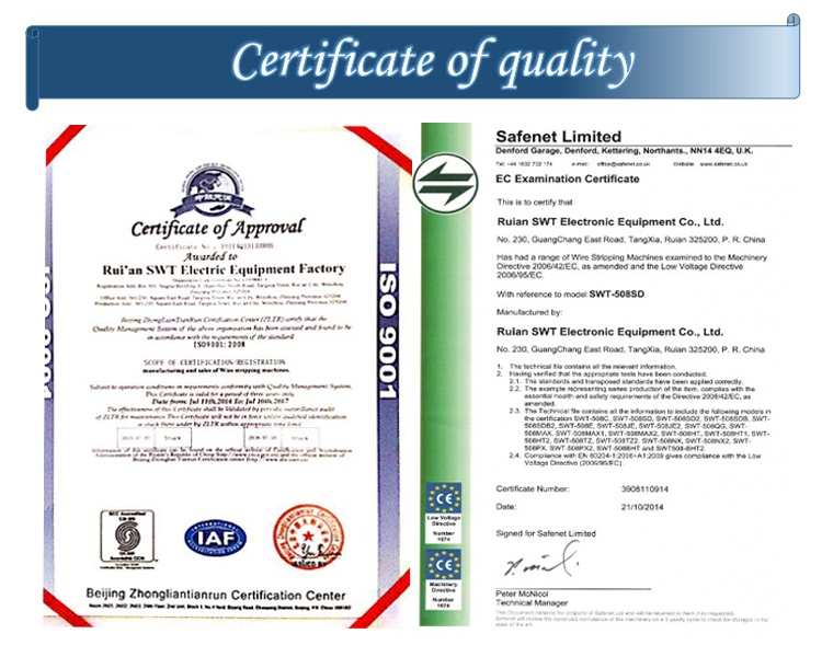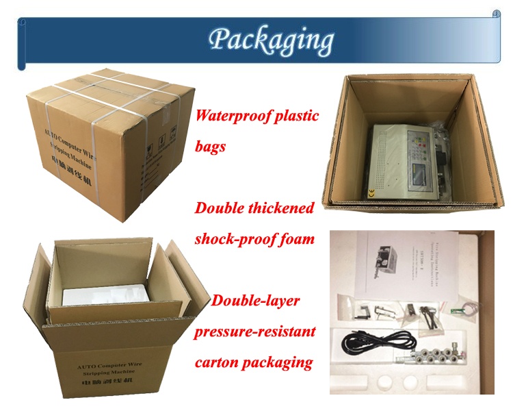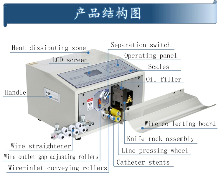Our product is to use LCD screen man-machine dialogue mode, with nice appearance, simple operation, convenient maintenance, stable performance, speed, precision higher main features. Wire length can set arbitrary, thrum and the line end parameters can also according to the customer request to change, different degree of finish stripping wires, also has the high tension line of line, casing of the shear etc. Function