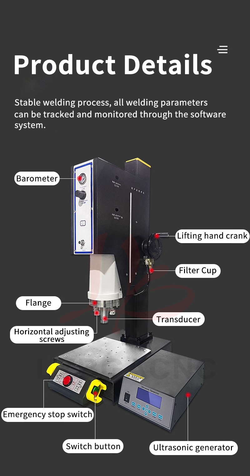 Ultrasonic Plastic Spot Welder Plastic Welding Machine Automatic Frequency Chasing Plastic Welding Spout 15K 2600W Welding Equipment Nylon Acrylic PP Automotive Industry