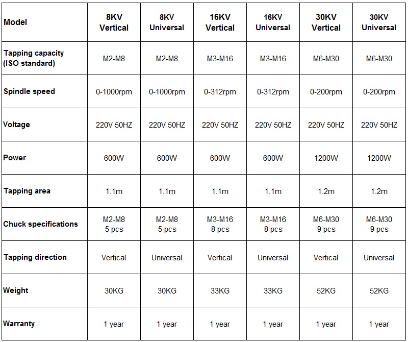 2.The tap of the tapping machine is equipped with overload protection device. With the clamping head of overload protection device, the safety clutch can be adjusted when the tapping exceeds the rated torque, and can avoid damage to the tap.