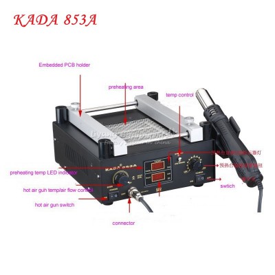 220/110V 600W KADA 853A SMD Rework Soldering Pre-heating Station Warm-up Infrared rays Hot air gun