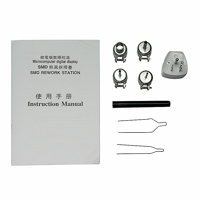 4 can greatly adjust the air volume and temperature , can be welded QFP and SOP type IC, welding and soldering can be selected according to the requirements of different nozzles ;